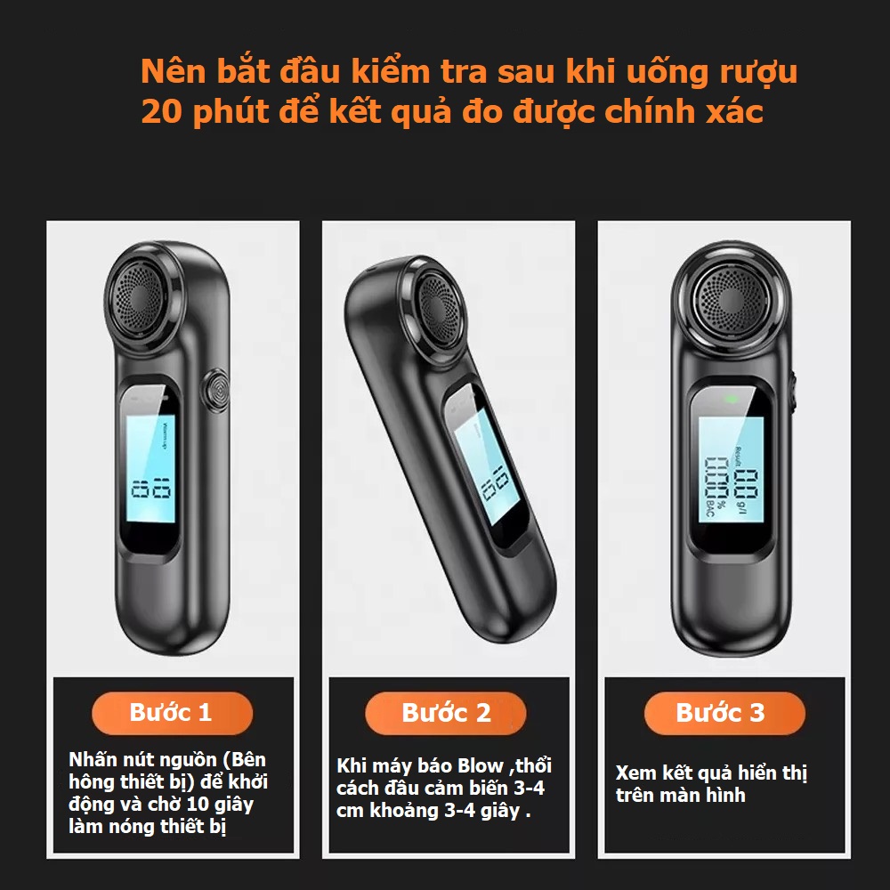 Máy kiểm tra nhanh trong 3 đến 5 giây sẽ báo kết quả trên màn hình. Khi nồng độ cồn vượt quá mức cho phép máy sẽ báo động bằng âm thanh
