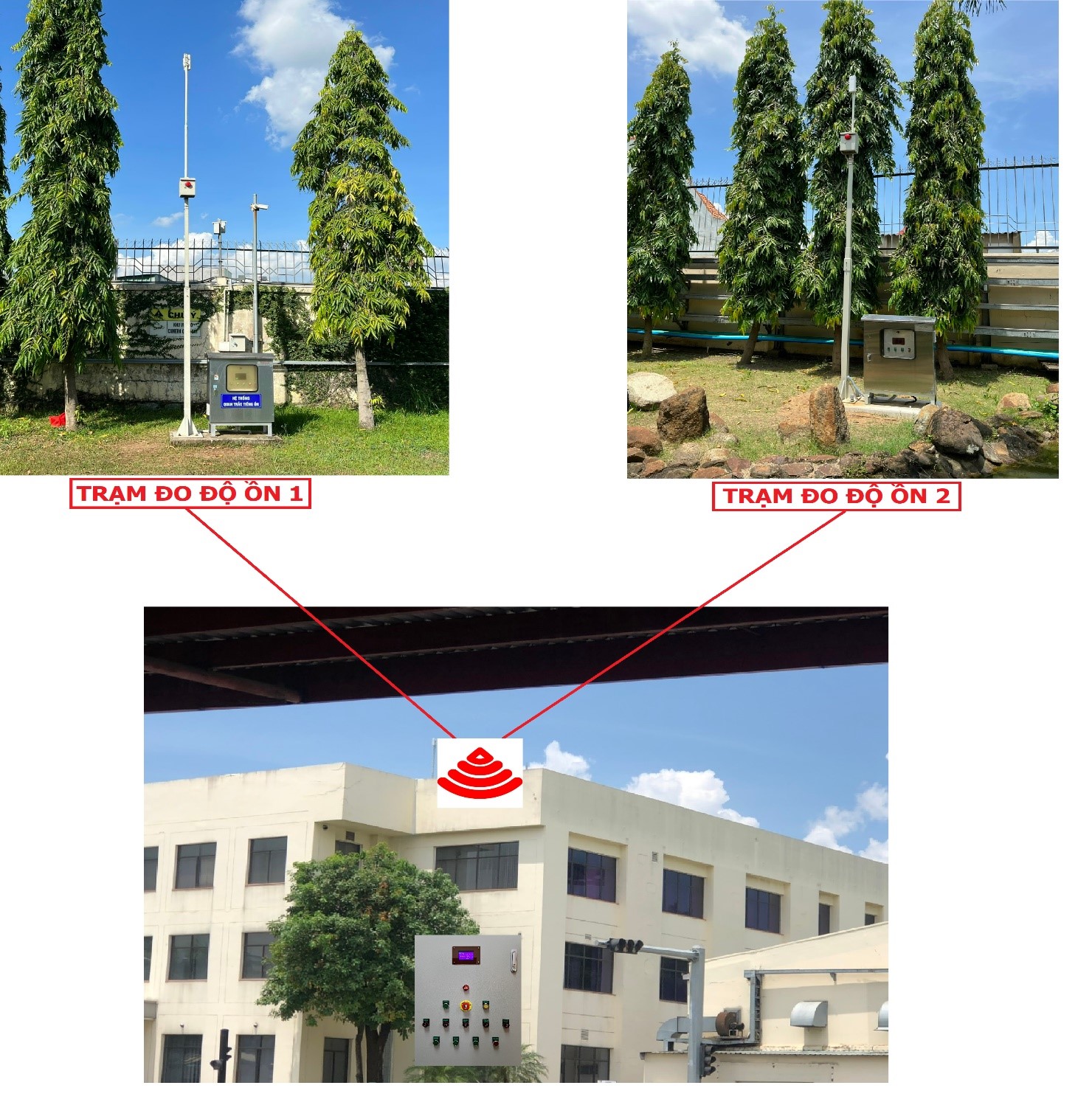 Tổng quan : Thiết bị giám sát tiếng ồn online bao gồm 2 bộ phận chính, bộ phận thứ nhất là trạm đo độ ồn được lắp đặt cố định tại vị trí cần giám sát có chức năng thu thập chỉ số tiếng ồn và ghi âm thanh liên tục theo thời gian thực, dữ liệu tiếng ồn được xử lý lưu vào bộ nhớ của trạm 24/24. Dữ liệu đo được theo thời gian thực được chia thành 24 tập tin tương tương ứng 24 giờ của 1 ngày , Trạm đo độ ồn có khả năng truyền dữ liệu không dây (Wireless) về trạm trung tâm để giám sát lưu trữ. Bộ phận thứ 2 là trạm trung tâm là nơi đặt thiết bị giám sát và lưu trữ dữ liệu tiếng ồn 2 kênh , trạm trung tâm nhận dữ liệu từ 2 trạm đo độ ồn phát về. Tại trạm trung tâm nhân viên giám sát có thể cài đặt được giá trị cảnh báo vượt ngưỡng cho phép.
